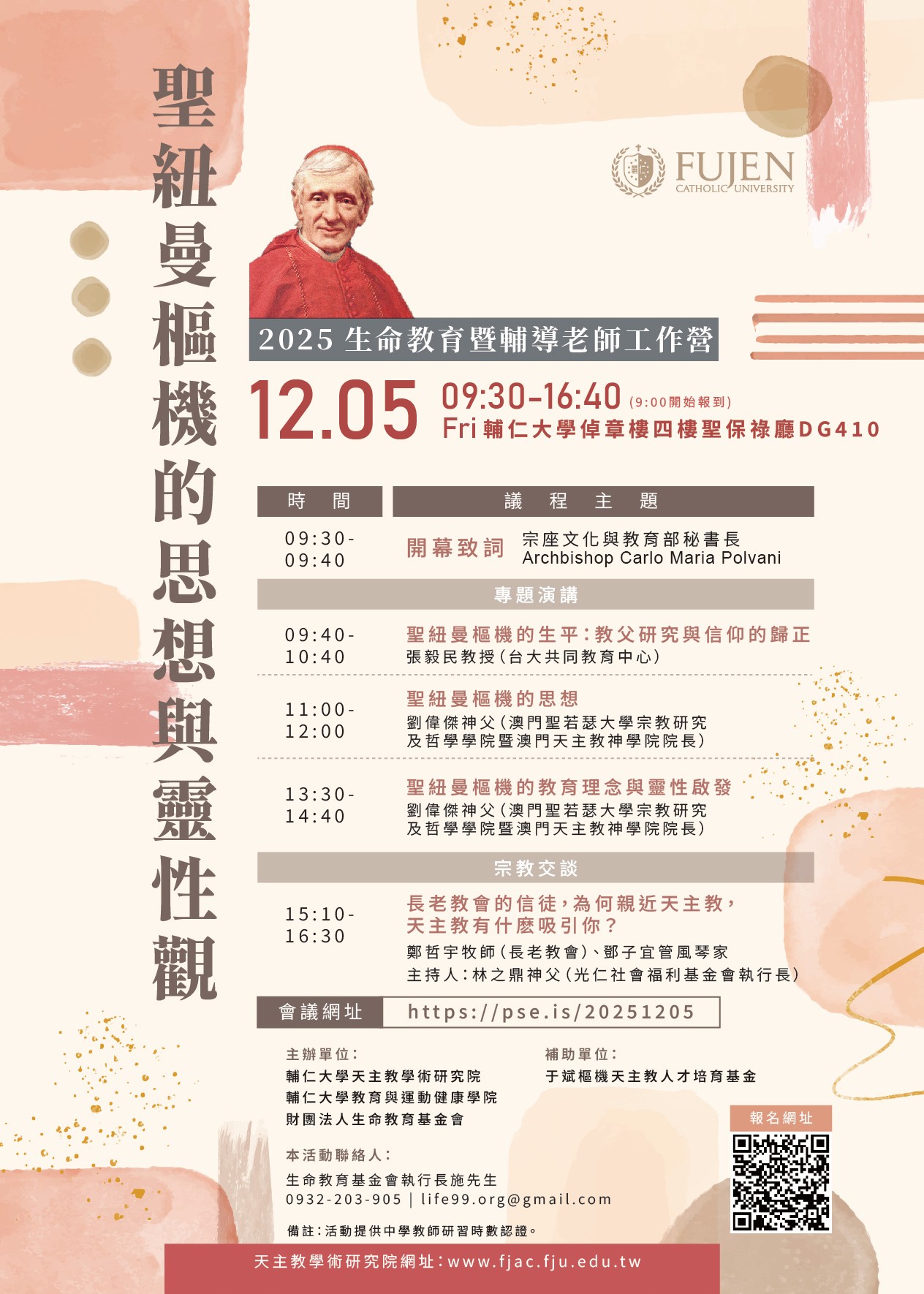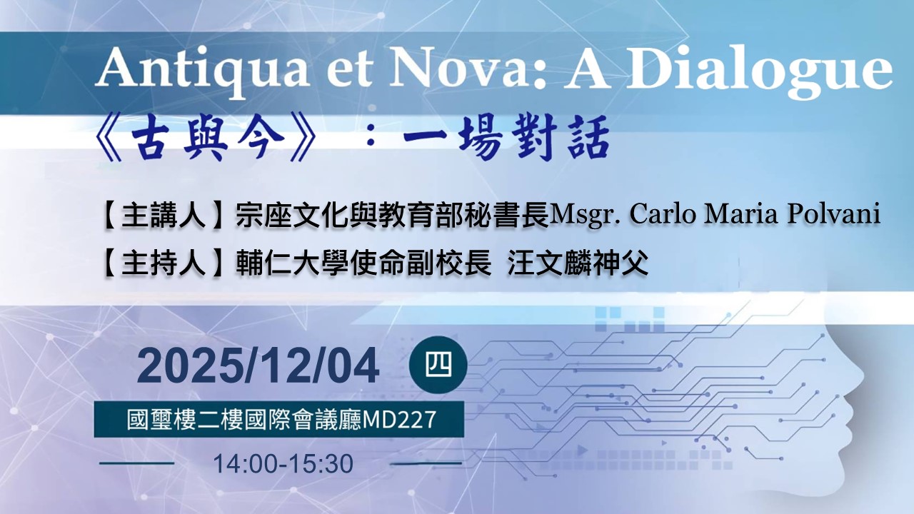 天主教學術研究院簡介關於研究院輔仁大學天主教學術研究院創立於2008年8月1日,主要整合了五個學術研究中心:士林哲學研究中心、天主教史研究中心、科學與宗教研究中心、華裔學志漢學研究中心以及若望保祿二世和平研究中心,並透過院本部之成立,強化更多元之天主教學術研究。目前涵蓋的研究領域為科學與宗教、士林哲學、天主教歷史、漢學、文學、和平與正義、倫理學、美學與跨藝術等多個領域,未來將繼續發展法律、社會、輔導、教育等領域。期能透過豐富多元的研究,傳達出天主的智慧真光、深化天主教學術研究的深度與廣度,未來發展成為華人世界天主教學術研究之重鎮。 |