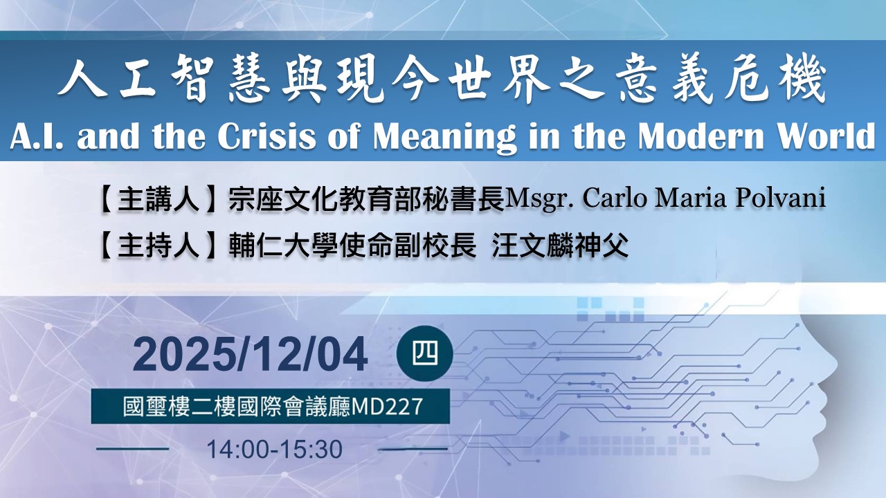 天主教學術研究院簡介關於研究院輔仁大學天主教學術研究院創立於2008年8月1日,主要整合了五個學術研究中心:士林哲學研究中心、天主教史研究中心、科學與宗教研究中心、華裔學志漢學研究中心以及若望保祿二世和平研究中心,並透過院本部之成立,強化更多元之天主教學術研究。目前涵蓋的研究領域為科學與宗教、士林哲學、天主教歷史、漢學、文學、和平與正義、倫理學、美學與跨藝術等多個領域,未來將繼續發展法律、社會、輔導、教育等領域。期能透過豐富多元的研究,傳達出天主的智慧真光、深化天主教學術研究的深度與廣度,未來發展成為華人世界天主教學術研究之重鎮。 |