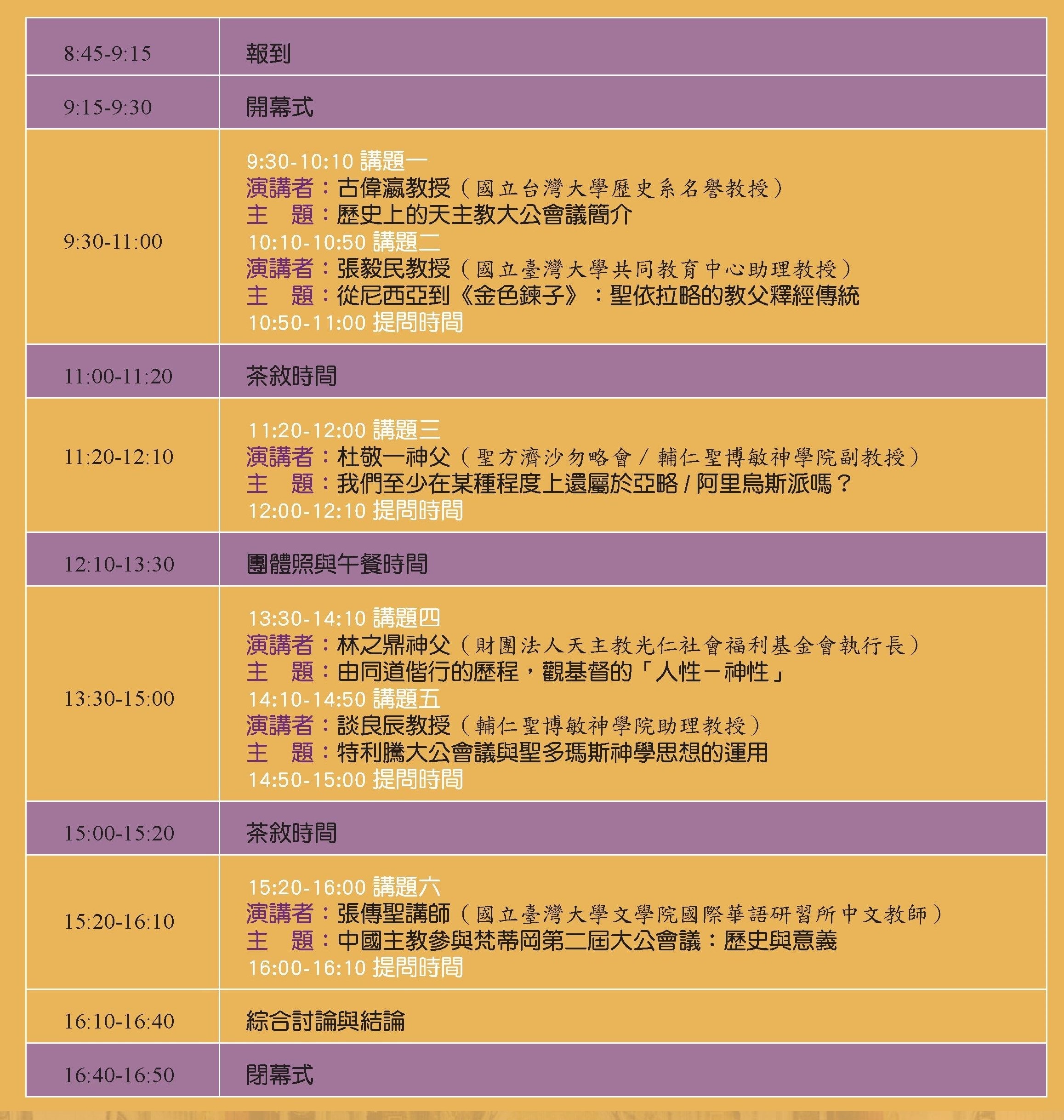 「從尼西亞大公會議至梵二:同道偕行的歷程」學術研討會